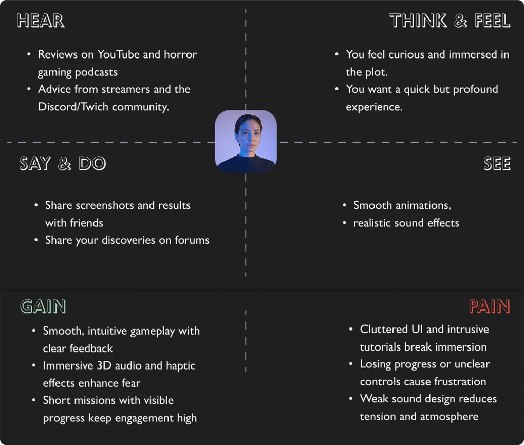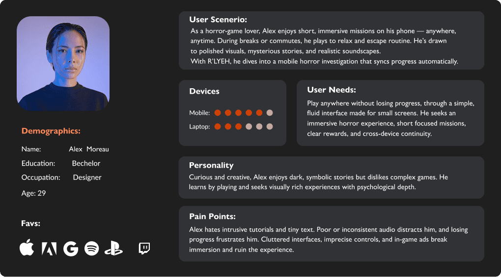 Motivations: they want to explore dark worlds, discover secrets and experience strong emotions in a short format that is always available.