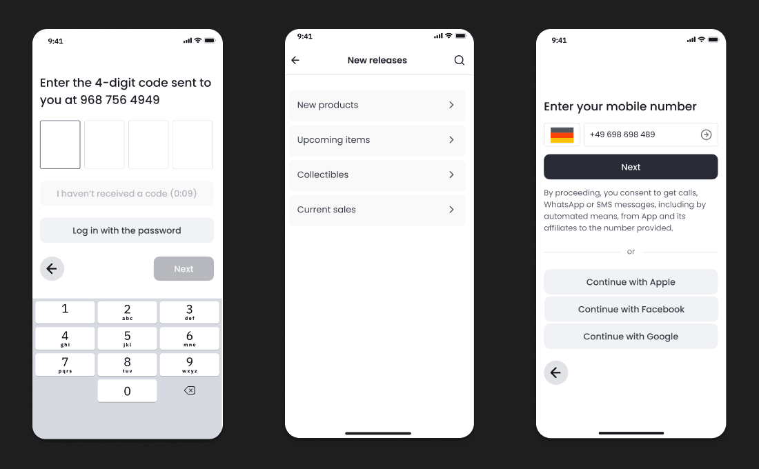 The layout system is built on three responsive grids — 12 columns for desktop, eight for tablets and four for smartphones — with consistent spacing based on multiples of eight dp. Every component in the system, including buttons, text fields and progress bars, follows this logic to ensure visual harmony across screen sizes and interaction states. The icon set is designed on a 16×16 grid and prioritises simplicity and readability — forms are stripped down to their essential gestures and remain legible even at the smallest touch target.